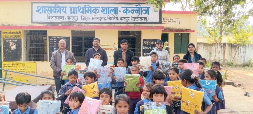 एमसीबी(गुफरान खान )भरतपुर विकासखंड के बैगा बहुल ग्राम कन्नौज में बढ़ती ठंड को देखते हुए प्राथमिक विद्यालय कन्नौज में शाला प्रबंधन समिति और शिक्षकों के संयुक्त प्रयास से बच्चों को गर्म कपड़ों का वितरण किया गया। इस पहल में विकासखंड शिक्षा अधिकारी मोहम्मद इस्माइल खान, सहायक विकासखंड शिक्षा अधिकारी सुदर्शन पैकरा, संकुल समन्वयक रमेश पटेल और विद्यालय के सभी शिक्षकों ने भाग लिया। गुरुवार को आयोजित इस कार्यक्रम में बच्चों को स्वेटर और अन्य गर्म कपड़े वितरित किए गए। इस नेक कार्य से बच्चों के चेहरे पर खुशी देखने लायक थी। कार्यक्रम के दौरान बच्चों ने गर्म कपड़े पाकर मुस्कुराते हुए अपनी खुशी साझा की। शिक्षकों और अधिकारियों ने भी उनकी हौसला-अफजाई की और आगे भी इस तरह के सहयोग जारी रखने का भरोसा दिलाया!