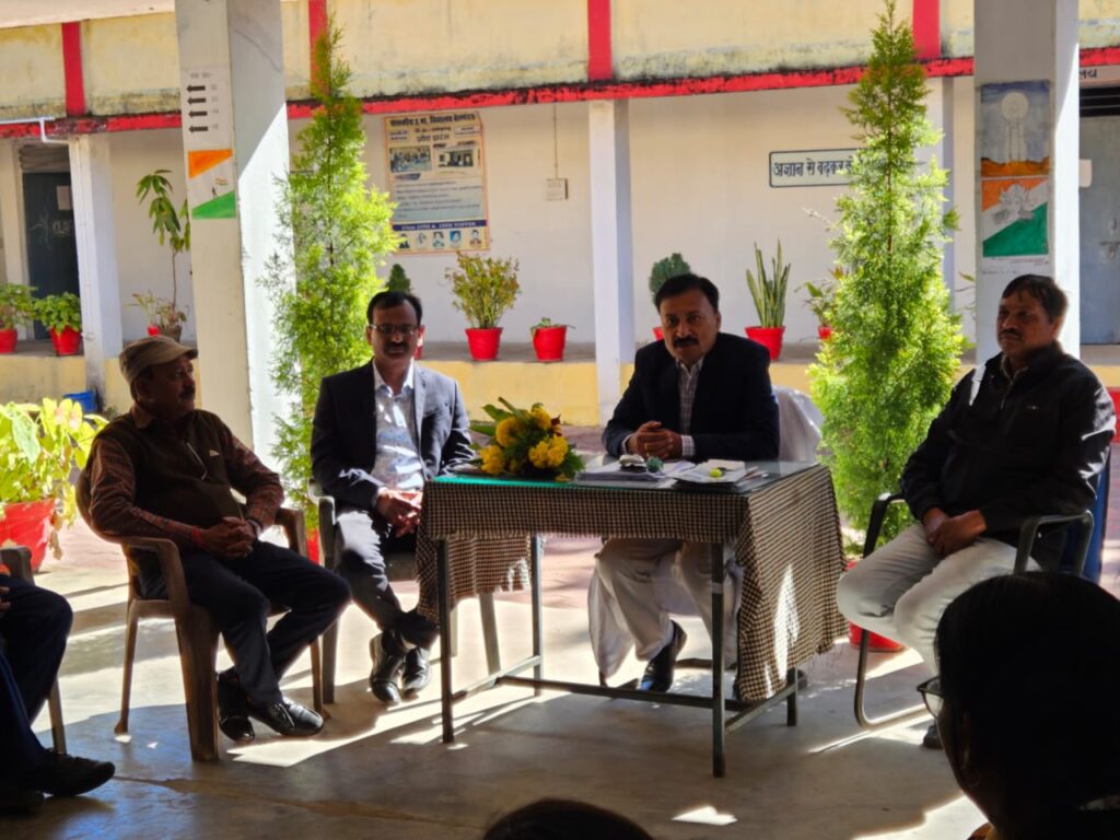 एमसीबी(गुफरान खान ) मनेंद्रगढ़-चिरमिरी- भरतपुर के जिला शिक्षा अधिकारी अजय मिश्रा ने आगामी बोर्ड परीक्षा 2025 की तैयारी की सिलसिले में जिले के विभिन्न विद्यालयों शासकीय कन्या उच्चतर माध्यमिक विद्यालय मनेंद्रगढ़, शासकीय उच्चतर माध्यमिक विद्यालय बेलबहरा, शासकीय उच्चतर माध्यमिक विद्यालय खोगापानी, शासकीय उच्चतर माध्यमिक विद्यालय लालपुर का सघन निरीक्षण किया तथा प्राचार्य एवं समस्त स्टाफ की बैठक ली तथा छमाही परीक्षा के रिजल्ट की समीक्षा की तथा 10वीं व 12वीं बोर्ड परीक्षा परीक्षा तैयारी के संबंध में कड़े निर्देश दिए । सभी विषय शिक्षकों से अलग-अलग चर्चा की साथ ही उन्होंने अन्य विभागीय कार्य परीक्षा पे चर्चा, अपार आईडी, नशा मुक्ति विद्यालय, छात्र-छात्राओं एवं शिक्षकों की उपस्थिति, व छात्रवृत्ति संबंधी कार्यों की समीक्षा की उक्त समीक्षा बैठक में जिला शिक्षा अधिकारी के साथ डॉ विनोद पांडेय प्राचार्य शासकीय स्कूल पिपरिया उपस्थित रहे।