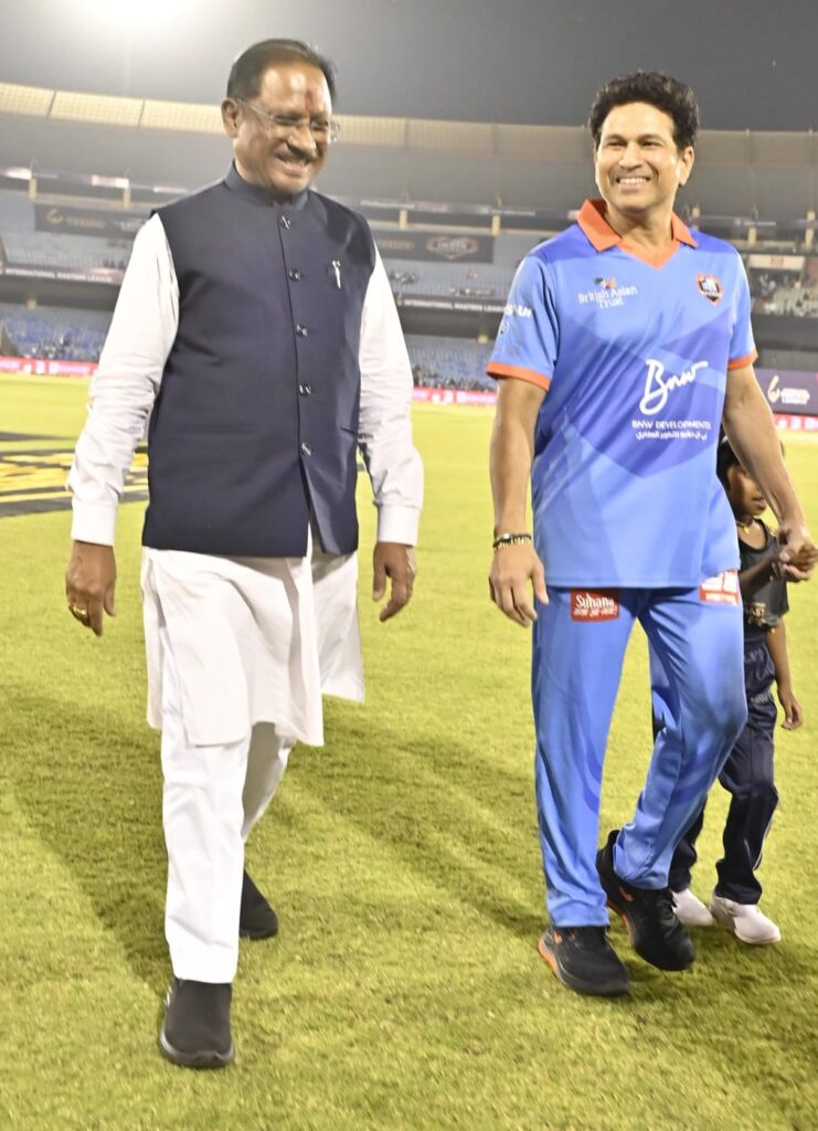 मुख्यमंत्री श्री साय ने कहा कि छत्तीसगढ़ की धरती पर इंटरनेशनल मास्टर्स लीग में भाग लेने आए सभी महान क्रिकेट खिलाड़ियों का हृदय से स्वागत है। यह हमारे प्रदेश के लिए गर्व का क्षण है कि हम क्रिकेट जगत के दिग्गजों को एक साथ खेलते हुए देख रहे हैं।