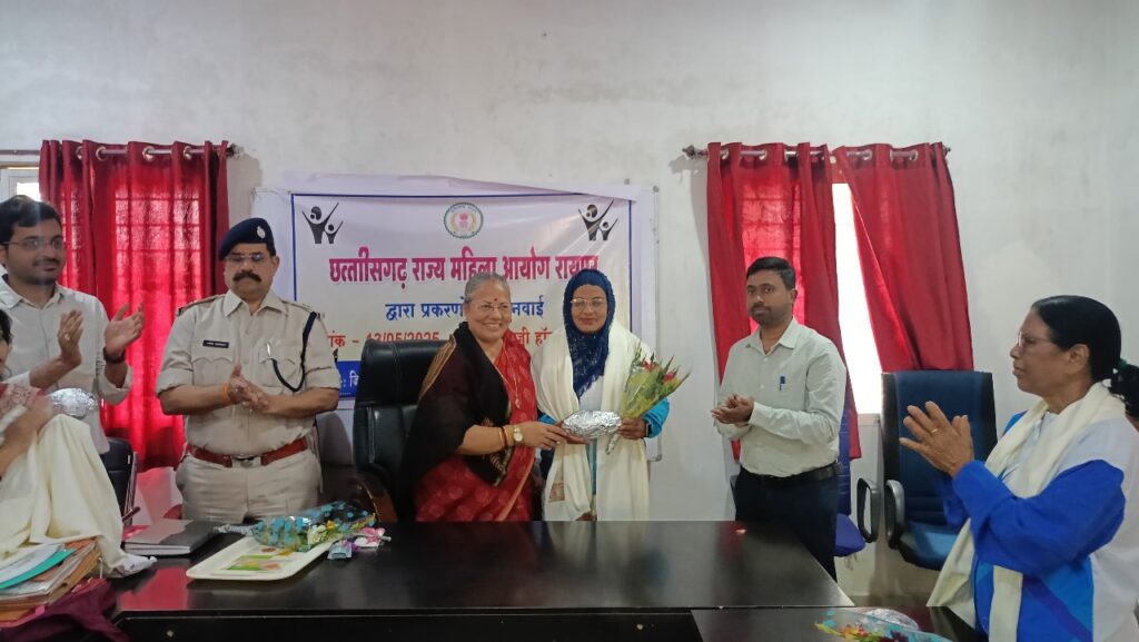 एमसीबी/13 मई 2025/ छत्तीसगढ़ राज्य महिला आयोग की अध्यक्ष डॉ. किरणमयी नायक छत्तीसगढ़ राज्य महिला आयोग ने आज कार्यालय मनेन्द्रगढ़-चिरमिरी-भरतपुर में महिला उत्पीड़न से संबंधित प्रकरणों पर सुनवाई की। आयोग की अध्यक्ष डॉ. किरणमयी नायक की अध्यक्षता में जिला गठन के बाद जिला स्तर पर आज प्रथम सुनवाई एवं प्रदेश स्तर पर 312 वीं सुनवाई की गई। सुनवाई के दौरान मनेन्द्रगढ़-चिरमिरी-भरतपुर कलेक्टर डी. राहुल वेंकट, एसडीएम लिंगराज सिदार, एडीशनल एसपी अशोक वाडेगावंकर एवं जिला कार्यक्रम अधिकारी शुभम बंसल उपस्थित रहें। सुनवाई के दौरान महिला आयोग अध्यक्ष डॉ. किरणमयी नायक एवं कलेक्टर डी. राहुल वेंकट, एसडीएम लिंगराज सिदार, एडिशनल एसपी अशोक वाडेगावंकर एवं जिला कार्यक्रम अधिकारी शुभम बंसल द्वारा बुजुर्ग महिला एथलिट्स श्रीमती शकुन्तला सिंह उम्र 70 वर्ष, श्रीमती कमला देवी मंगतानी उम्र 67 वर्ष, श्रीमती संजीदा खातून उम्र 55 वर्ष एवं 12वीं की छात्रा कुमारी स्वाती मंगतानी को शॉल एवं श्रीफल देकर सम्मानित किया गया। सभी एथलिट्स इस उम्र में भी राज्य एवं राष्ट्रीय स्तर पर सैकड़ों मैडल जीत कर प्रदेश के साथ-साथ देश का भी नाम रोशन कर रहीं हैं। आज की सुनवाई के दौरान उभय पक्ष ने बताया कि उनके बीच 25 सितम्बर 2024 को सुलहनामा हो गया था, जानकारी के अभाव पर उन्होंने महिला आयोग को सूचना देने में असमर्थ थे आज सुनवाई के दौरान सुलहनामा का आवेदन प्रस्तुत करने पर आयोग ने प्रकरण नस्तीबद्व किया। अन्य प्रकरण में आवेदिका ने बताया कि उसके पति द्वारा मारपीट कर घर से निकाल दिया गया है एवं भरण पोषण भी नहीं दिया जा रहा है। अनावेदक पहले चरचा कालरी में शासकीय नौकरी करता था। वह 2018 में रिटायर हुए, रिटायरमेंट के बाद उसे 40 लाख रुपये मिला था जिसमें से 18 लाख रुपये अपने नाती के नाम पर बैंक में जमा कर दिया है और अपनी पत्नी आवेदिका को घर से निकाल दिया है जो काफी बीमार है जिसे भरण-पोषण भी नहीं देता है 65 वर्षीय आवेदिका अपनी बेटी के घर पर असहाय अवस्था में रह रही है। आवेदिका की दो बेटियां उपस्थित है और दोनों में आवेदिका के पक्ष में बयान दिया है और यह बताया है कि उनका पिता अनावेदक लगातार डंडे से मारपीट करता है और भरण-पोषण भी नहीं देता है। अनावेदक के पास 15 लाख रू. बैंक में जमा है आयोग की समझाइश पर 05 लाख रू. अपनी पत्नी को देने के लिए तैयार है। आगामी 15 मई 2025 को 5 हजार व 15 दिनों के अंदर 5 लाख रू. अपनी पत्नी को देगा। इस प्रकरण में प्रोटेक्शन ऑफिसर वित्तबाला श्रीवास्तव को निगरानी के लिए नियुक्त किया गया है। उनके द्वारा प्रतिमाह 01 वर्ष तक नियमित निगरानी किया जायेगा। अनावेदक द्वारा आवेदिका को प्रोटेक्शन अधिकारी के समक्ष पैसे दिया जायेगा। इस दौरान उभय पक्ष की स्टाम्प में लिखा पढ