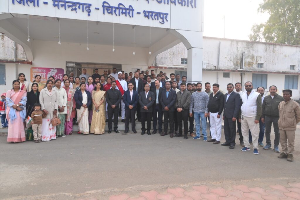 एमसीबी(गुफरान खान )जिले में 77 वें गणतंत्र दिवस के अवसर पर कलेक्ट्रेट परिसर में भव्य, गरिमामय एवं राष्ट्रभक्ति से ओत-प्रोत समारोह का आयोजन किया गया। कार्यक्रम के मुख्य अतिथि कलेक्टर एवं जिला दंडाधिकारी डी. राहुल वेंकट रहे, जिन्होंने प्रातः विधिवत रूप से राष्ट्रीय ध्वज फहराया तथा उपस्थित अधिकारियों एवं कर्मचारियों के साथ सामूहिक रूप से राष्ट्रगान किया। ध्वजारोहण के पश्चात कलेक्टर डी. राहुल वेंकट ने राष्ट्रपिता महात्मा गांधी के छायाचित्र तथा कलेक्ट्रेट परिसर में स्थापित छत्तीसगढ़ महतारी की प्रतिमा एवं छायाचित्र पर माल्यार्पण कर पुष्प अर्पित किए और उनके आदर्शों को नमन किया। इस दौरान पूरा परिसर “भारत माता की जय” और देशभक्ति के नारों से गूंज उठा, जिससे वातावरण पूर्णतः राष्ट्रमय हो गया।