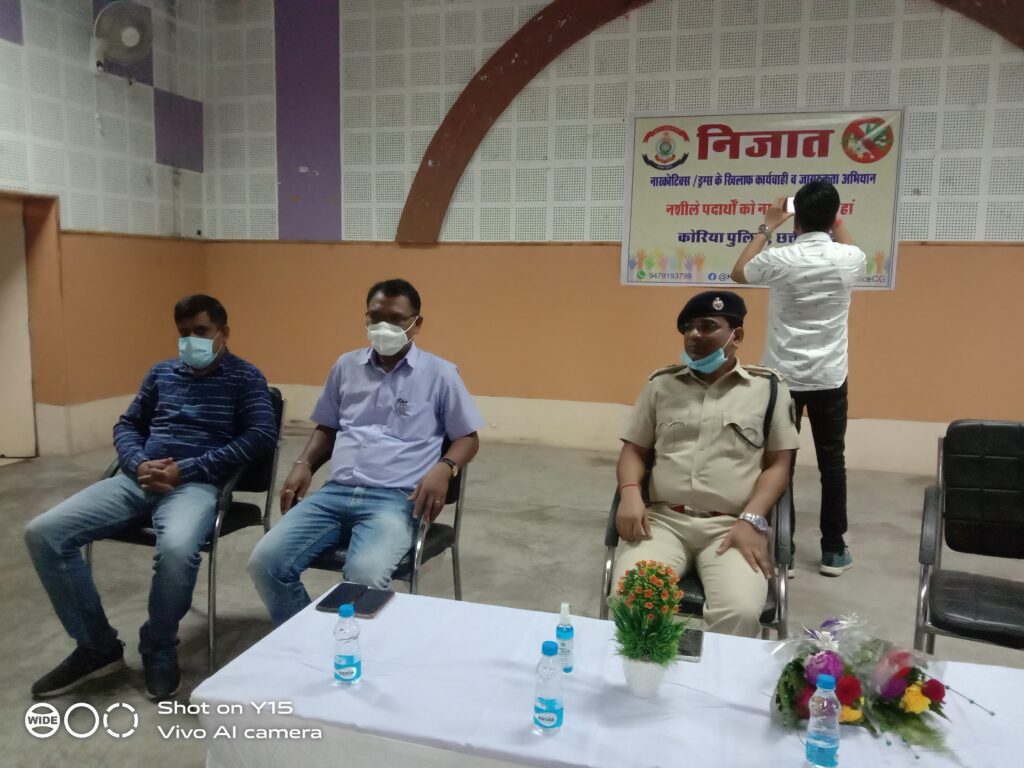 कोरिया चिरिमिरी- में बढ़ते हुए नशे एवं ड्र्ग्सके विभिन्न अवैध व्यापारों और समाज के नौजवान वर्ग को नशे के चपेट में ध्वस्त होते देख कर कोरिया के पुलिस विभाग की तरफ से निजात नारकोटिक्स/ड्र्ग्स के खिलाफ कार्यवाही एवं जन जागरूकता अभियान आयोजित की गई।।